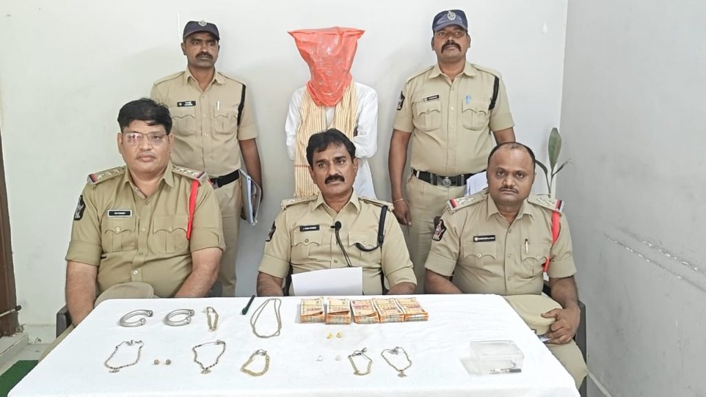 సి. బెలగల్ మండలం, తిమ్మం దొడ్డి గ్రామానికి చెందిన గిర్ని వెంకటేష్ (45) నుండి సుమారు 9 తులాల బంగారు ఆభరణాలు , సుమారు 55 తులాల వెండి , లక్ష రూపాయల నగదు స్వాధీనపరచుకుని అరెస్ట్ చేయడమైనదన్నారు.