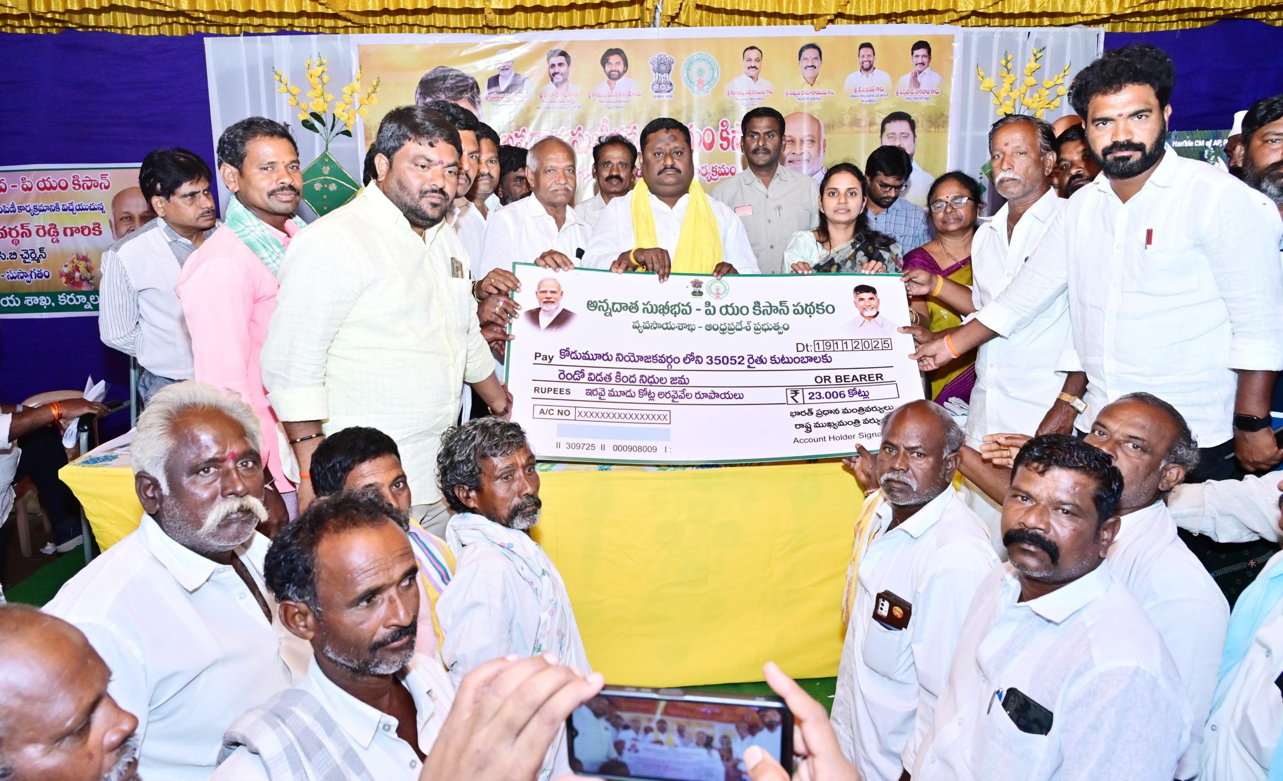 ఈ పథకం ద్వారా ఈరోజు రాష్ట్రం మొత్తం మీద 46.85 ,837 మంది రైతులకు రెండవ విడతలో భాగంగా 3135 కోట్ల రూపాయలు జమ చేయడం జరుగుతుందని తెలియజేశారు.సీఎం చంద్రబాబు నాయుడు ఆధ్వర్యంలో రైతుల సమస్యల పరిష్కారం, వ్యవసాయ అభివృద్ధికి సంబంధించిన నిర్ణయాలు తీసుకుంటూ, రైతు కుటుంబాలకు నేరుగా లాభం చేకూరేలా చర్యలు తీసుకుంటున్న్నారన్నారు. అర్హులైన రైతులు చనిపోయిన పక్షంలో వారి వారసులకు అర్హత బదిలీ (డెత్ మ్యుటేషన్) చేసి పథకం వర్తించేలా చర్యలు తీసుకోవడం జరిగిందన్నారు.రైతులు ఎన్ పి సి ఐ వినియోగంలో లేని ఖాతాలను తిరిగి వినియోగంలోకి తెచ్చుకుంటే వెంటనే నిధులు జమ అయితాయని తెలియజేశారు.దాదాపు 6310 కోట్లు 2 విడతలుగా అందించడం జరిగిందన్నారు.రైతులకు పంటల ఉత్పత్తి ఖర్చులను సవరించి, రైతులకు ఆర్థిక భరోసా కల్పించేందుకు ఈ పథకం ఉపయోగపడనుందన్నారు .