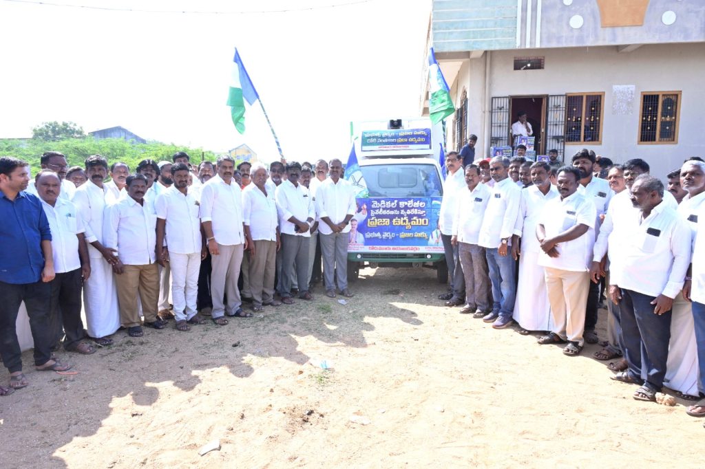 నియోజవర్గంలో సేకరించిన 60 వేల సంతకాల పత్రాలను ఇవాళ కోడుమూరు నుంచి భారీ ప్రదర్శనగా ప్రత్యేక వాహనంలో తరలించారు. ఈ సందర్భంగా పార్టీ నేతలు మాట్లాడుతూ..ప్రభుత్వమే దళారీగా మారిపోయి వైద్య సేవలు, వైద్య కళాశాలలను ప్రైవేటుపరం చేయడం.. విలువైన సంపదను ప్రైవేట్ వ్యక్తులకు దోచిపెడుతుండటం దుర్మార్గమన్నారు. అన్ని సదుపాయాలు, అనుమతులతో సిద్ధంగా ఉన్న ప్రభుత్వ కొత్త మెడికల్ కాలేజీలను సంతలో సరుకులు, పప్పు బెల్లాల మాదిరిగా చంద్రబాబు సర్కారు తెగనమ్మడం సరికాదన్నారు.