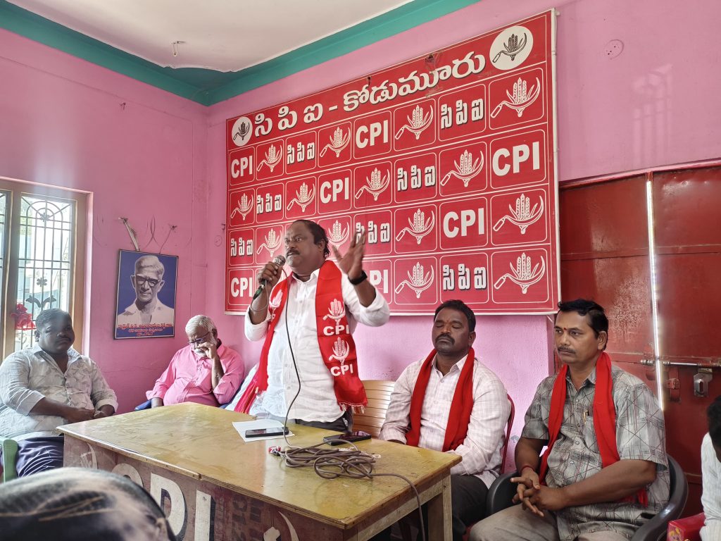 ఈ సందర్భంగా సిపిఐ జిల్లా సహాయ కార్యదర్శ నక్కి లెనిన్ బాబు మాట్లాడుతూ భారత కమ్యూనిస్టు పార్టీ సిపిఐ డిసెంబర్ 25వ తేదీన పార్టీ వార్షికోత్సవాలను జయప్రదం చేయాలని రాష్ట్ర సమగ్ర అభివృద్ధి కావాలంటే రాష్ట్రంలో పెండింగ్ సాగునీటి ప్రాజెక్టులు, నూతన పరిశ్రమలు, వెనుక ఉన్న ప్రాంతాల రాయలసీమ ఉత్తరాంధ్ర జిల్లాలకు ప్రత్యేక ప్యాకేజీ , రాష్ట్రంలో నిరుద్యోగ సమస్య పరిష్కారం కోసం ప్రభుత్వ శాఖలో ఉన్న ఖాళీగా ఉన్న ఉద్యోగాలు భర్తీ, రైతాంగ కార్మిక మహిళ సమస్యలపై చర్చించి భవిష్య ఉద్యమాలకు రూపకల్పన చేస్తామని అన్నారు.