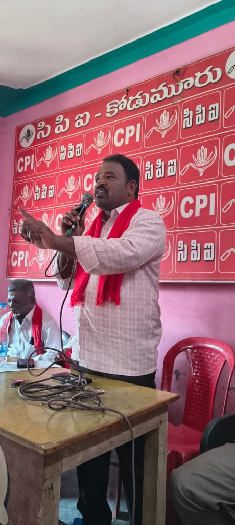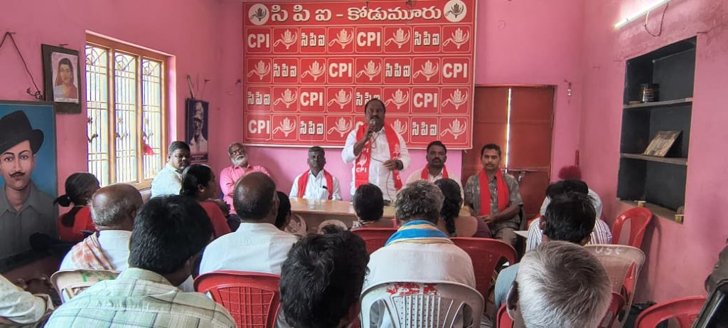 ఆదివారం నాడు స్థానిక సిపిఐ భవన్ నందు సిపిఐ నియోజవర్గ గూడూరు సి.బెళగల్ కోడుమూరు మండలాల జనరల్ బాడీ సమావేశం ఈ సమావేశం అధ్యక్షతన మండల కార్యదర్శి బి రాజు అధ్యక్ష వహించడం జరిగింది.