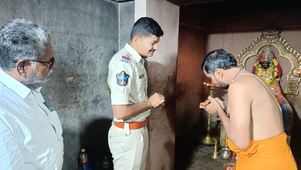 ఎస్సై కే. అఖిల్ కుమార్ గ్రామంలో వెలిసిన శ్రీ సుంకుల పరమేశ్వరి అమ్మవారిని దర్శించి ప్రత్యేక పూజలు నిర్వహించారు. అమ్మవారి దర్శనార్థం దేవస్థానమునకు విచ్చేసిన ఎస్సై అఖిల్ కుమార్ ను గ్రామ పెద్దలు గోపాల్ రెడ్డి మరియు సుంకన్న పెద్దలు ఘన స్వాగతం పలికారు. ఆలయ సిబ్బంది కేశవ ప్రత్యేక పూజలు చేయించారు. కే నాగలాపురం పోలీస్ స్టేషన్లో విధులు నిర్వహించి బదిలీపై వెళ్తున్న ఎస్సై శరత్ కుమార్ రెడ్డి ని స్థానిక పెద్దలు ఘనంగా సన్మానించి వీడ్కోలు పలికారు. కార్యక్రమంలో స్థానిక పెద్దలు పోలీస్ స్టేషన్ సిబ్బంది ఉన్నారు.