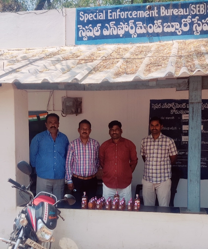 కర్నూలు జిల్లా, సి. బెలగల్ మండలంలోని గుండ్రేవుల గ్రామములో సెబ్ పోలీసులు జరిపిన దాడులలో బోయ రామాంజనేయులు అనే వ్యక్తి తెలంగాణ రాష్ట్రానికి చెందిన 34 మద్యము బాటిళ్లు మోటారు వాహనంలో రవాణా చేస్తుండగా  మోటార్ సైకిల్, మద్యము సీజ్ చేసి, కేసు నమోదు చేయడం జరిగింది.